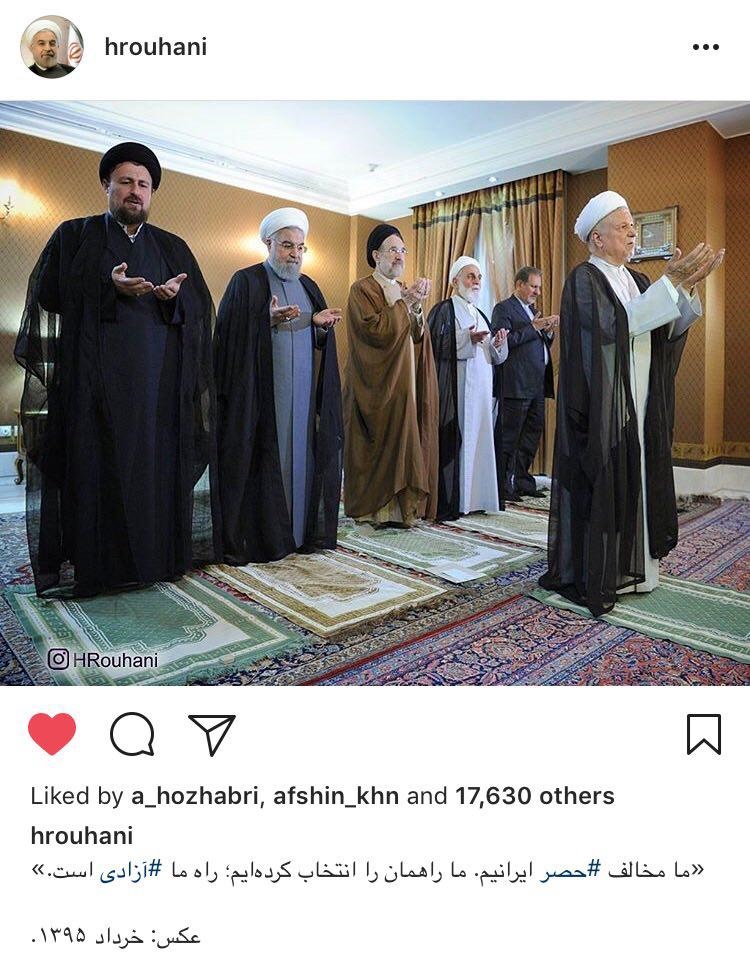 به گزارش جماران، حسن روحانی در تازه ترین پست اینستاگرامیاش تصویری را منتشر کرده و نوشته است: ما مخالف حصر ایرانیم، ما راهمان را انتخاب کرده ایم، راه ما آزادی است.