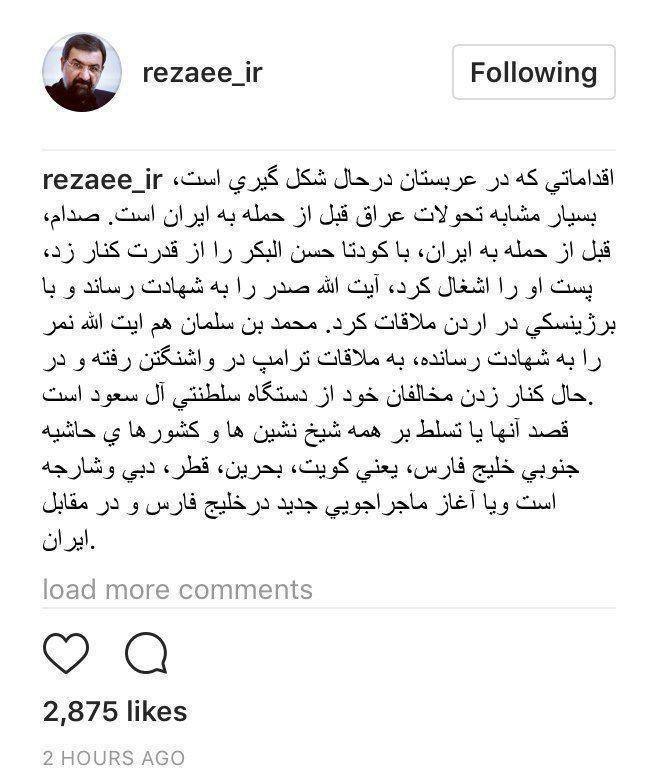 به گزارش جماران، محسن رضایی در صفحه اینستاگرام خود نوشت: