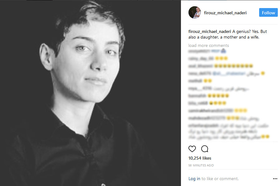 به گزارش جماران نادری با انتشار عکسی از مریم میرزاخانی نوشت: یک نابغه؟ بله اما همچنین یک دختر، یک مادر و یک همسر