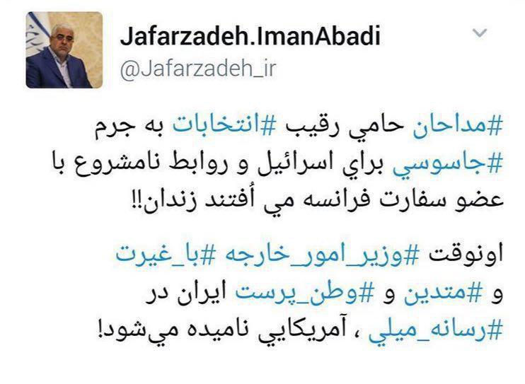 به گزارش جماران جعفرزاده ایمن آبادی در حساب توییتری خود نوشت: