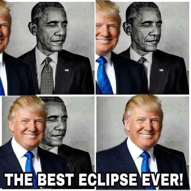 رئیس جمهور امریکا توئیتی را ریتوئیت کرد که با الهام از خورشید گرفتگی اخیر در امریکا، تصویر ترامپ کم کم در جلوی صورت باراک اوباما قرار داده و آن را به بهترین گرفتکی تشبیه کرده است.