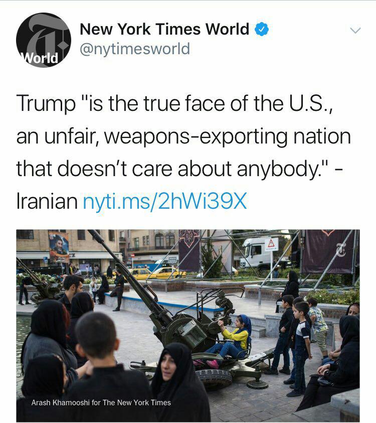 به گزارش جماران؛ در صفحه رسمی نیویورک تایمز در توییتر آمده است: «امروز محبوب ترین ستارههای ایران نه بازیگرند، نه خواننده، که دو چهره نظام اند: سردار سلیمانی که نماد پیروزی کوبنده ایران تلقی میشود؛ و جواد ظریف، نماد یک ایران معقول و سنجیده».