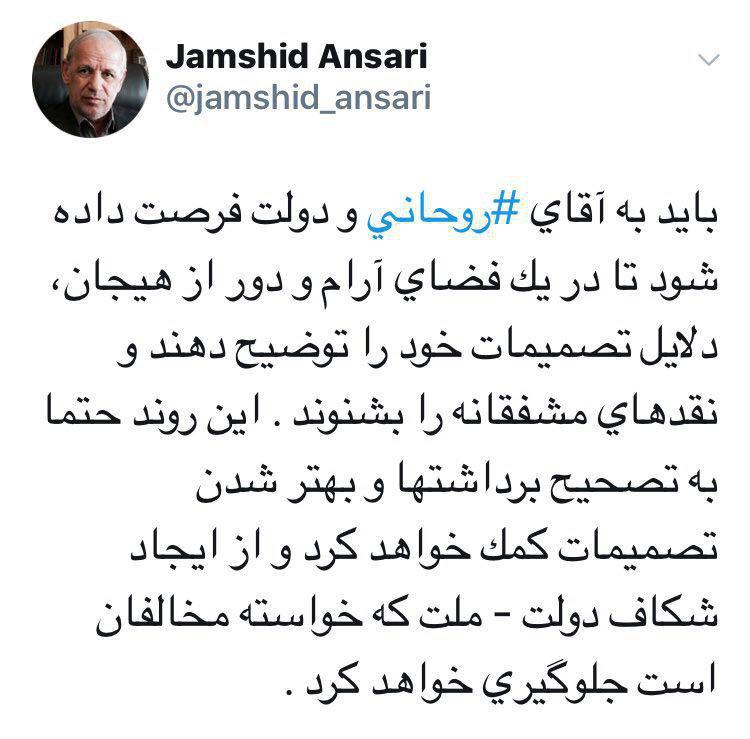به گزارش جماران؛ جمشید انصاری در توییتی نوشت: