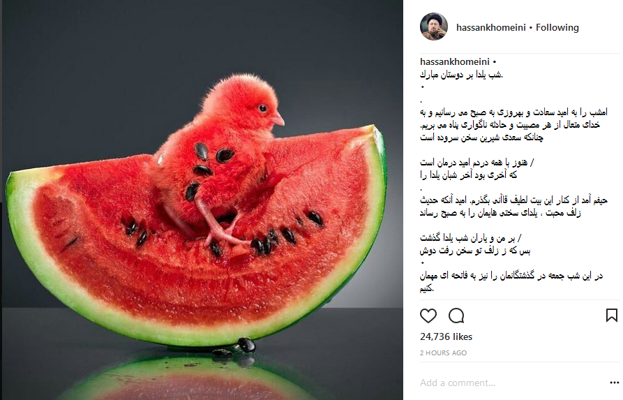 سید حسن خمینی به مناسبت شب یلدا در اینستاگرام خود نوشت: