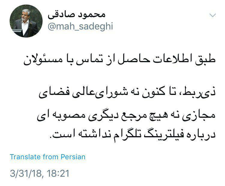 «طبق اطلاعات حاصل از تماس با مسئولان ذیربط، تا کنون نه شورایعالی فضای مجازی نه هیچ مرجع دیگری مصوبه ای درباره فیلترینگ تلگرام نداشته است.»