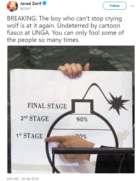 «پسر بچهای که نمیتواند از چوپان دروغگو بودن دست بکشد، باز هم میخواهد طبق عادتش عمل کند. فضاحت آن کارتون در مجمع عمومی سازمان ملل برایش درس نشده است. فقط سر بعضی از مردم را میتوان به طور مکرر کلاه گذاشت».
