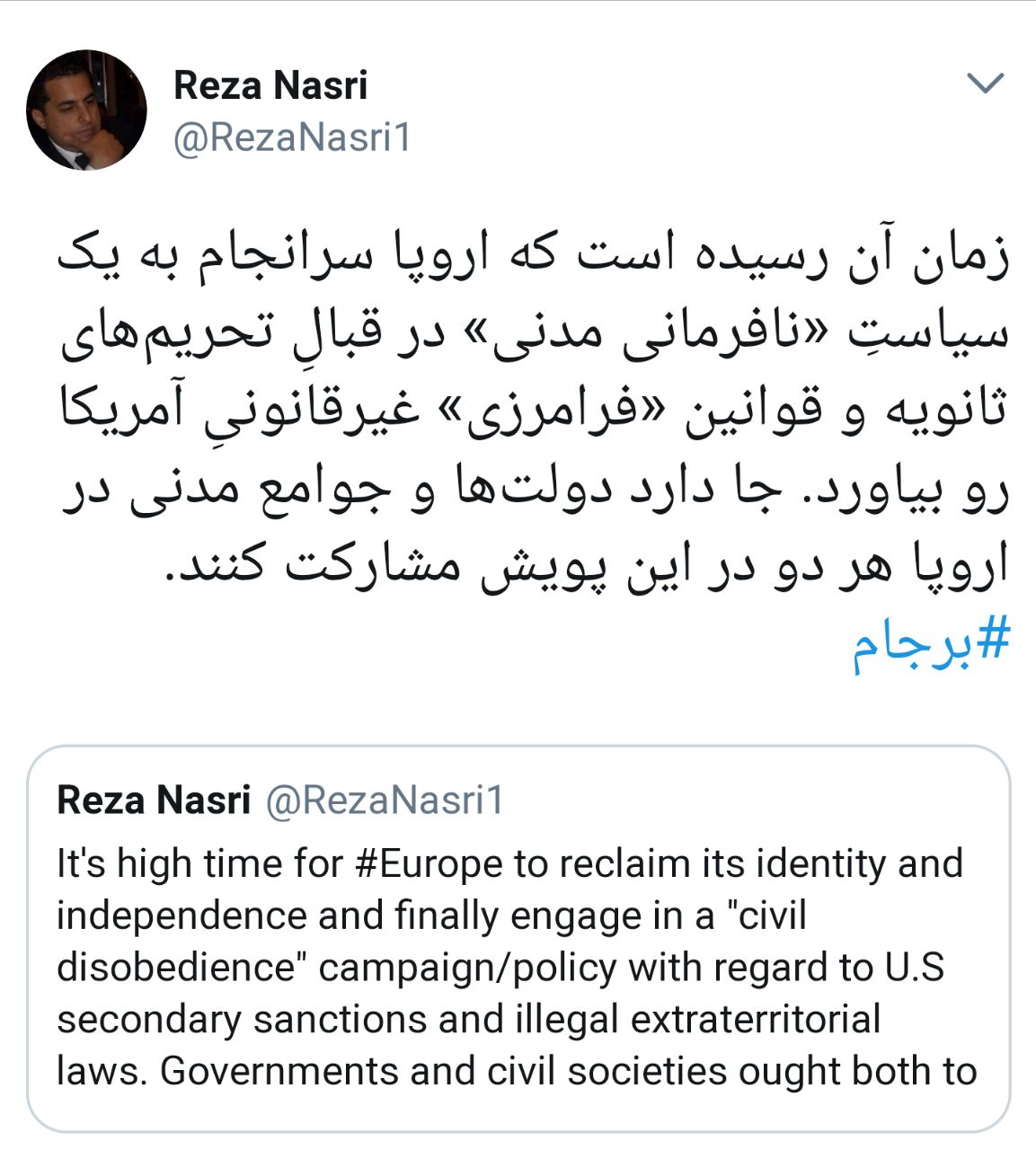 رضا نصری تحلیلگر مسائل بین الملل به خروج ترامپ از برجام واکنش نشان داد و از جوامع مدنی و دولت های اروپایی خواست نسبت به این موضوع واکنش نشان دهند