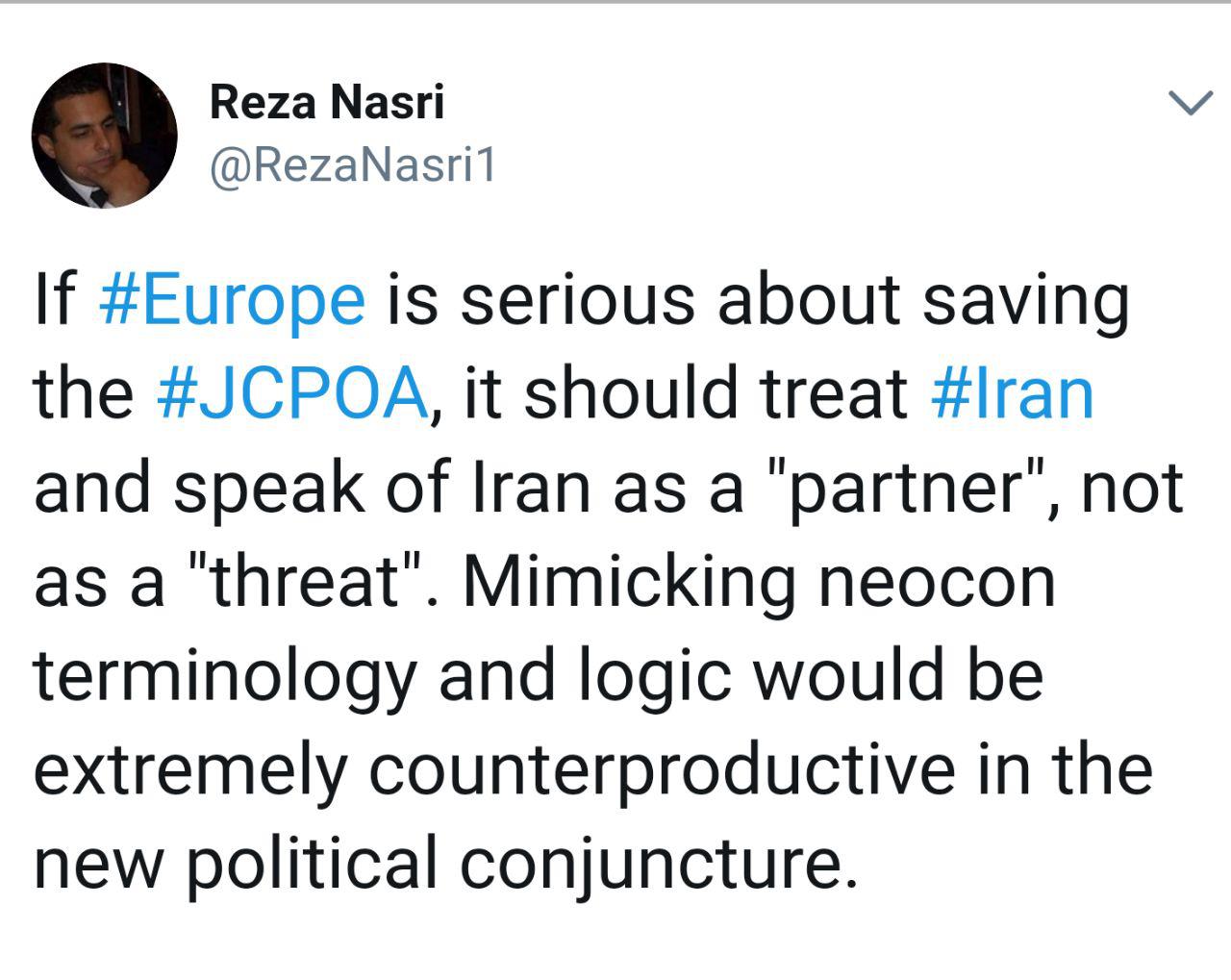اگر اروپا در حفظ برجام جدی است، باید از ایران به عنوان یک «شریک» صحبت کند، نه به عنوان یک «تهدید». تقلید از ادبیات و منطق نومحافظهکاران آمریکا در شرایط سیاسی کنونی بسیار غیرسازنده است.