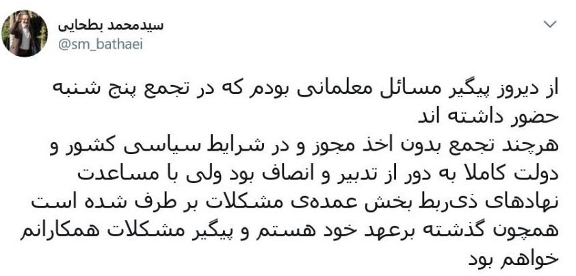 به گزارش جماران؛ سید محمد بطحایی وزیر آموزش و پرورش پس از تجمع اعتراضی برخی از معلمان در روز پنجشنبه در صحفه توییترش نوشت: «از دیروز پیگیر مسائل معلمانی بودم که در تجمع روز پنجشنبه حضور داشتهاند.هر چند تجمع بدون اخذ مجوز و در شرایط سیاسی کشور و دولت کاملا به دور از تدبیر و انصاف بود ولی با مساعدت نهادهای ذیربط بخش عمده مشکلات برطرف شده است. همچون گذشته بر عهد خود هستم و پیگیر مشکلات همکارانم خواهم بود.»