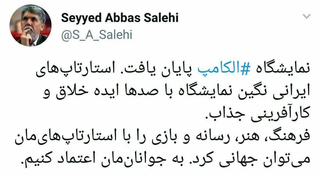 فرهنگ، هنر، رسانه و بازی را با استارتاپهایمان میتوان جهانی کرد. به جوانانمان اعتماد کنیم.»