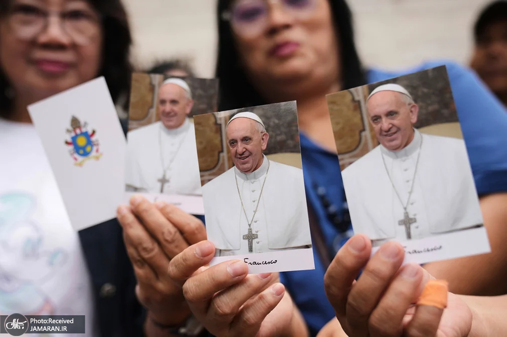 جاکارتا، اندونزی/ زنان پرترههایی از پاپ فرانسیس فقید را نشان میدهند