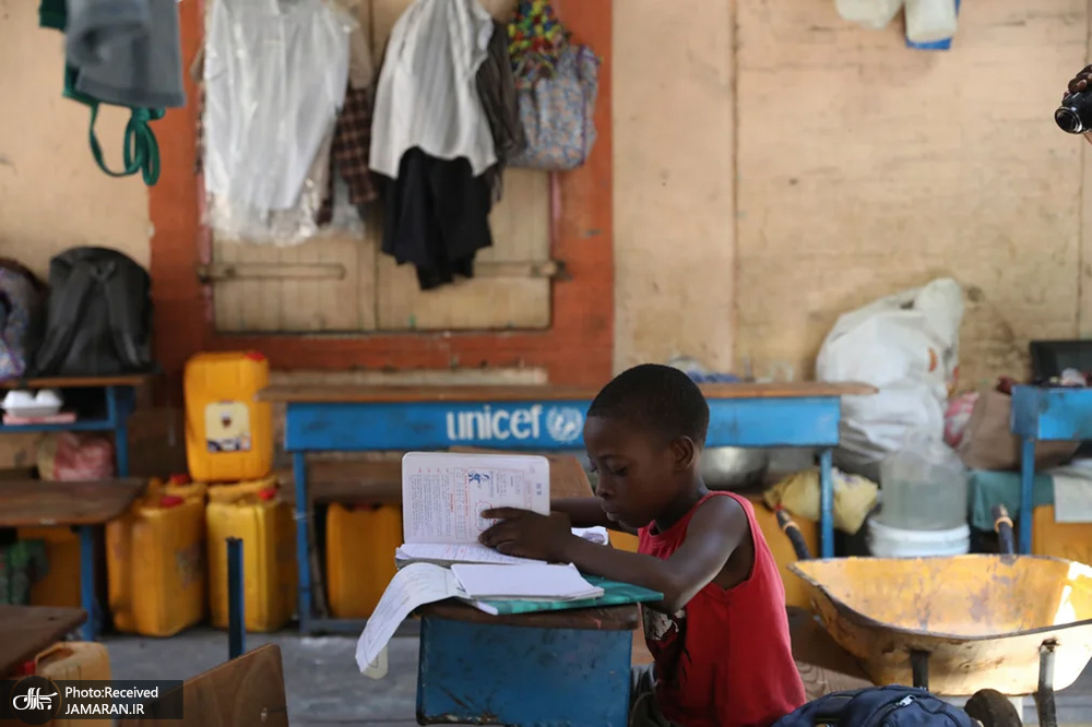 پورتو پرنس، هائیتی/ یک کودک تکالیف خود را در مدرسه ای انجام می دهد که به عنوان پناهگاهی برای کسانی که از خشونت گروهی فرار می کنند، فعالیت می کند