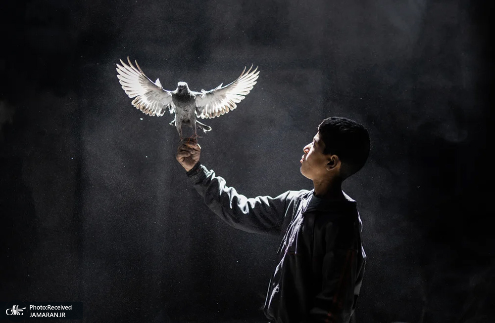 غزه، فلسطین/ عرفات القفرنا، یکی از کودکان فلسطینی که در اثر حملات رژیم صهیونیستی در نوار غزه آواره شده است، با کبوتر بازی می کند