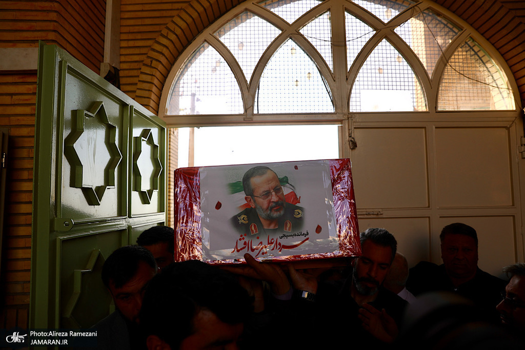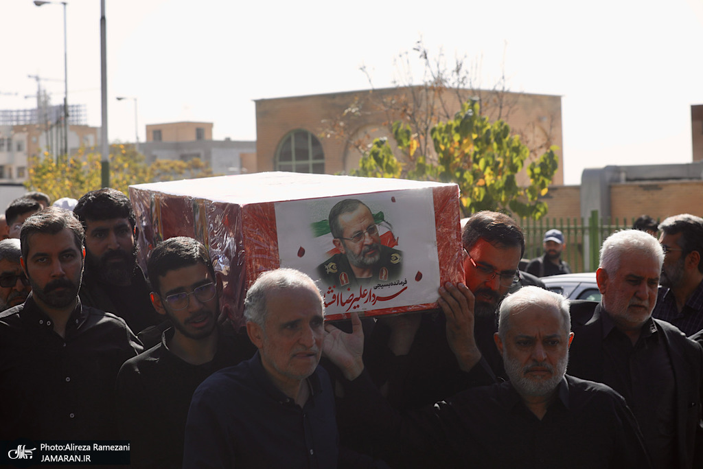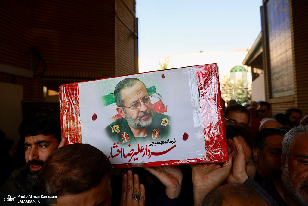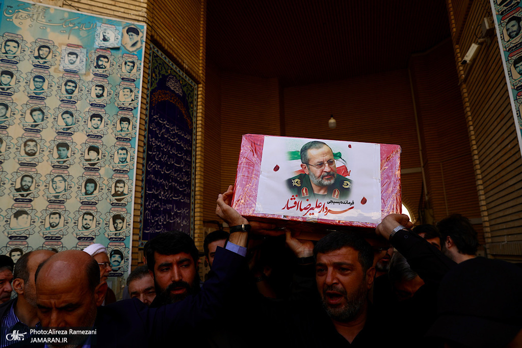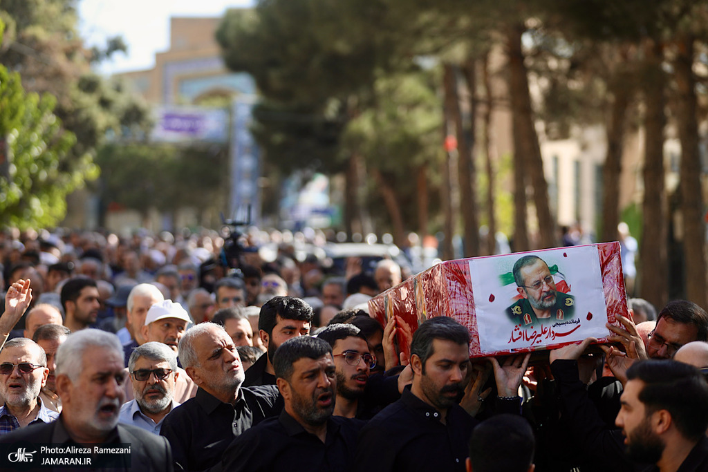 به گزارش جماران، مراسم تشییع پیکر سردار «علیرضا افشار» صبح جمعه (۲۵ مهر ۱۴۰۴) با حضور جمعی از مسئولان و مردم از مسجد امیرالمومنین(ع) تا مقبره شهدا در شهرک شهید محلاتی تهران تشییع شد.