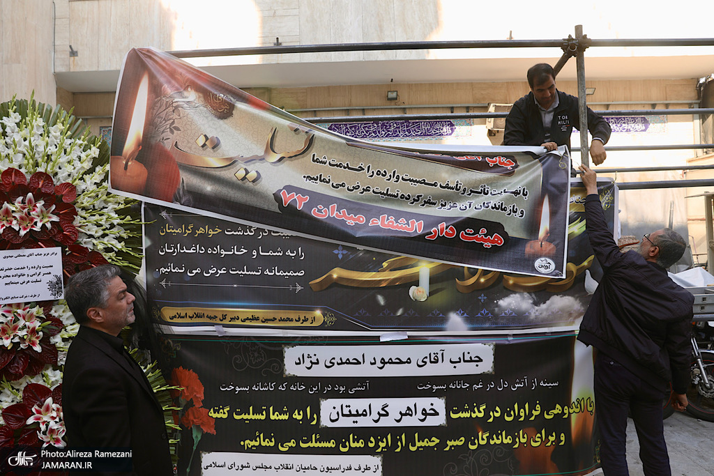 به گزارش جماران، مراسم ختم زرین احمدینژاد خواهر محمود احمدی نژاد رئیس دولت های نهم و دهم در مسجد جامع نارمک، برگزار شد.