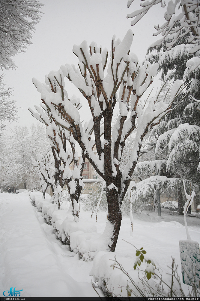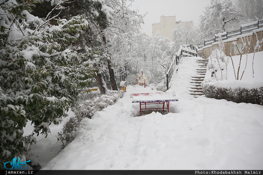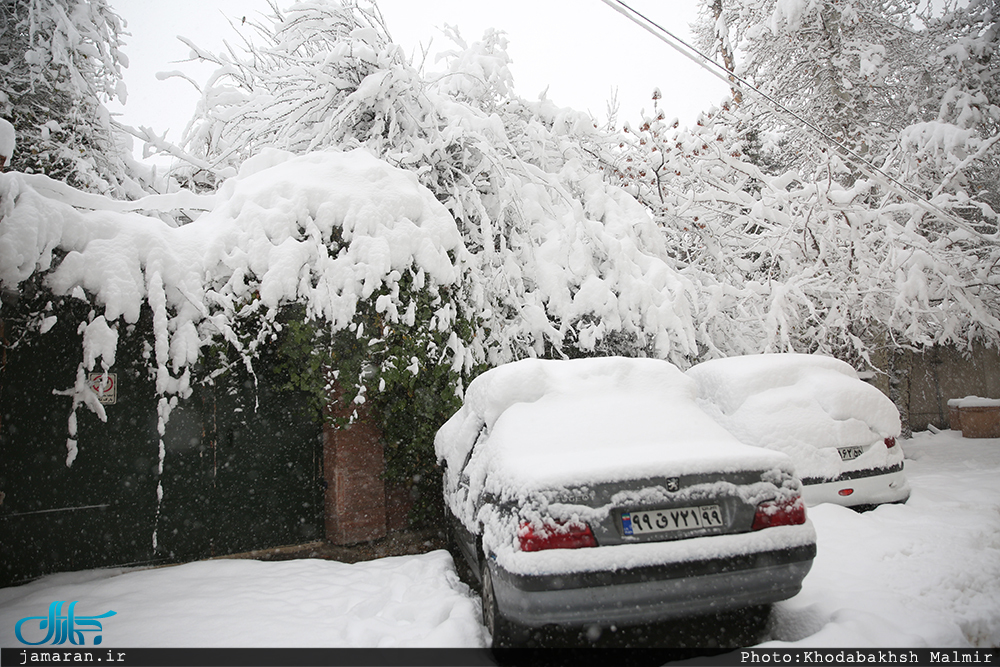 برف امروز تهران در محله جماران