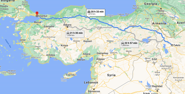 مسافت استانبول تا تبریز چقدر است؟
