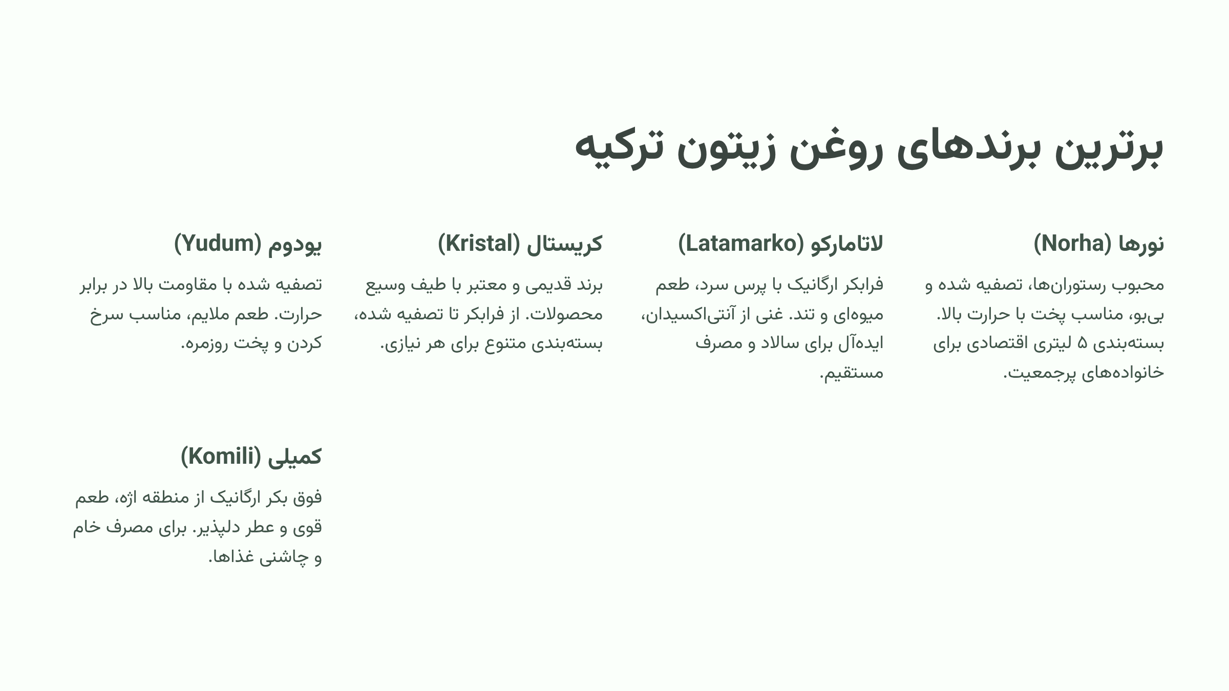 معرفی بهترین مارک های روغن زیتون ترکیه موجود در ایران