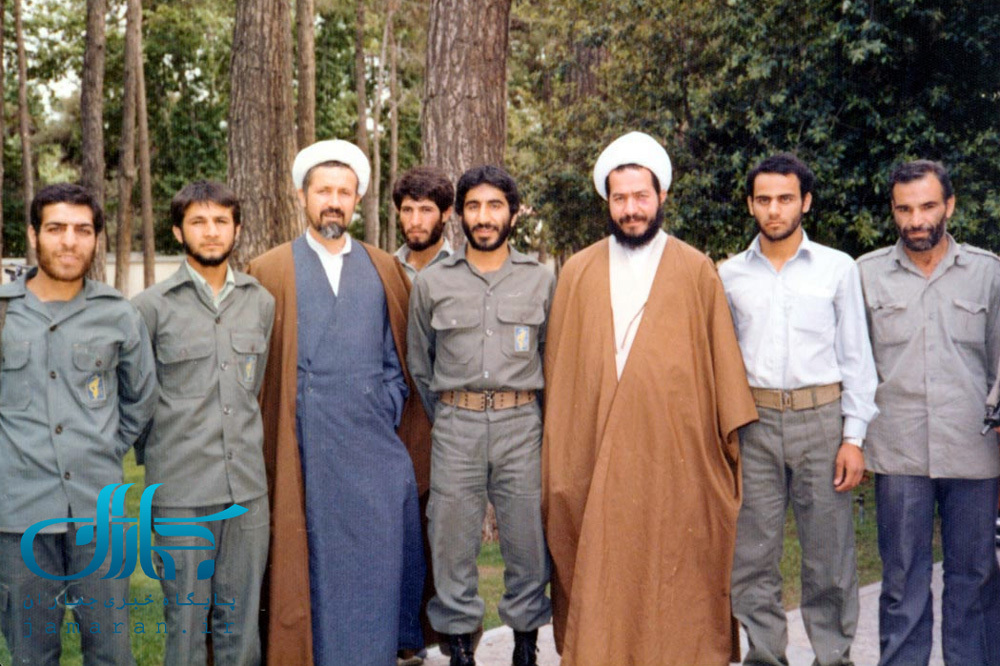 آیت الله مقتدایی و آیت الله مومن در میان پاسداران