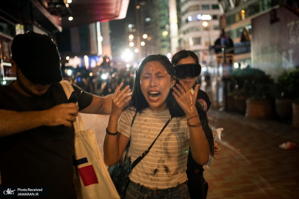 یک زن پس از پاشیدن گاز فلفل توسط پلیس در اعتراضات هنگ کنگ. عکس: فلیپه دانا، AP