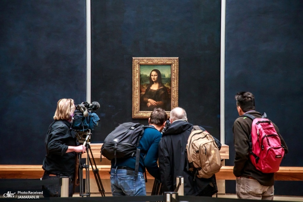 تهیه گزارش خبری از نقاشی لئوناردو داوینچی در اتاق جدید موزه لوور در پاریس. عکس: Christophe Petit Tesson، EPA-EFE