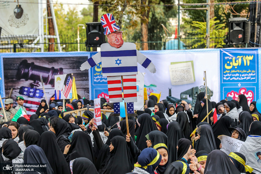 به گزارش جماران، مراسم راهپیمایی با شکوه ۱۳ آبان با حضور اقشار مختلف مردم و جمعی از مسئولین در مقابل لانه جاسوسی امروز دوشنبه، سیزدهم آبان ماه همزمان با سراسر کشور برگزار شد.