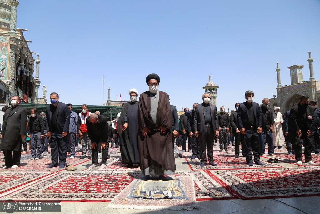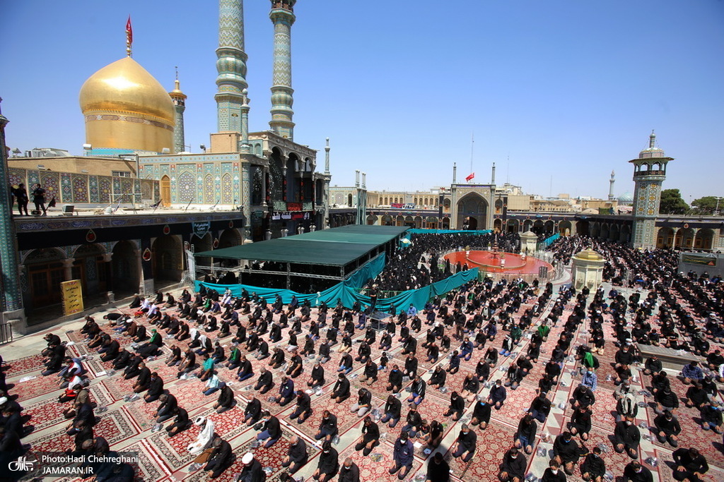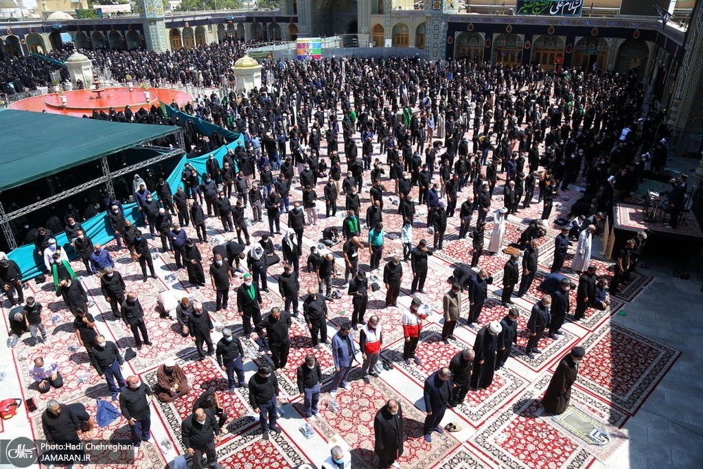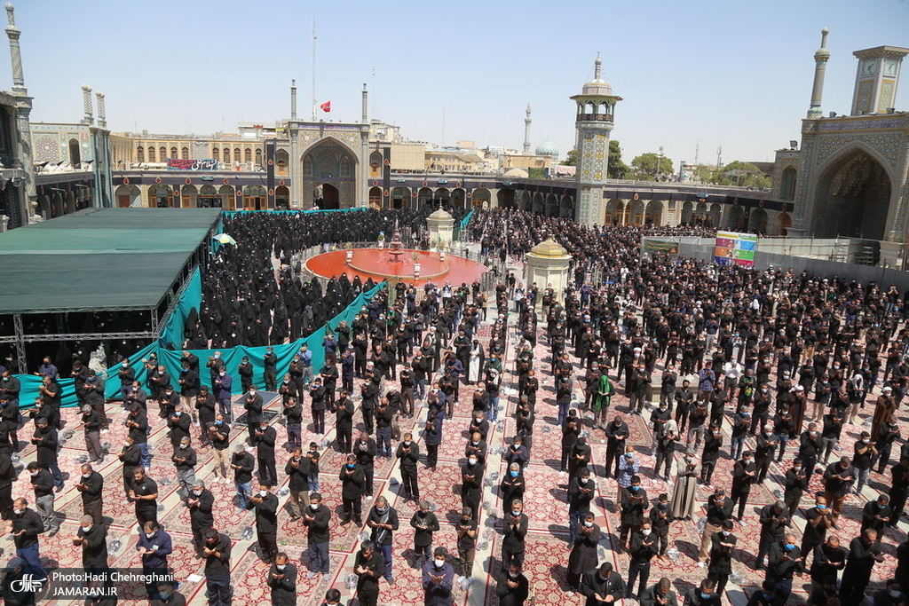 به گزارش جماران از قم، مراسم عزاداری ظهر عاشورای حسینی روز یکشنبه با رعایت پروتکل های بهداشتی در حرم مطهر حضرت معصومه(س) برگزار شد.