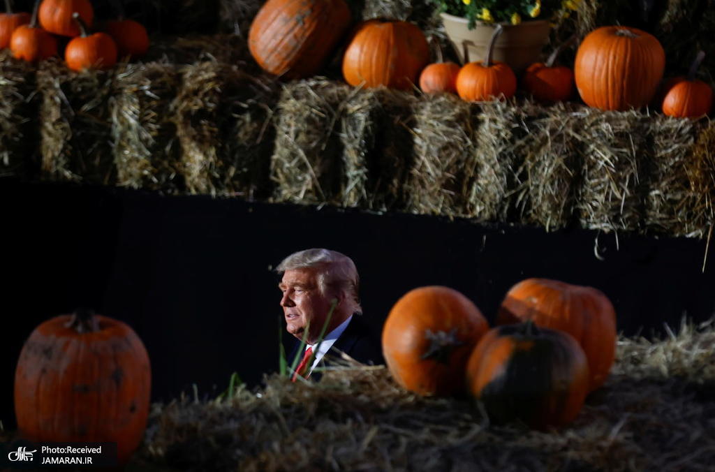 دونالد ترامپ، هنگام مبارزات انتخاباتی در فرودگاه پنسیلوانیا، بین کدو تنبل ها دیده می شود. عکس: AFP