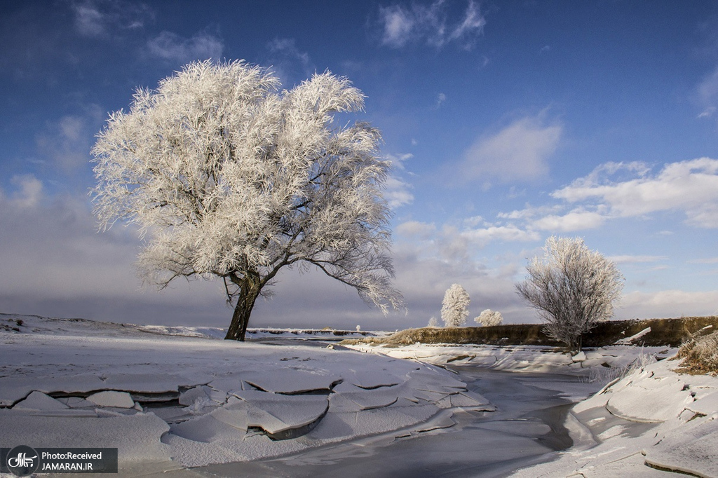 پس از بارشهای اخیر در استان اردبیل و سفیدپوش شدن این استان، سرمای شدید هوا موجب یخ زدگی شاخههای درختان شد و زیبایی خاصی را به طبیعت برفی استان داده است. عکس: باشگاه خبرنگاران جوان