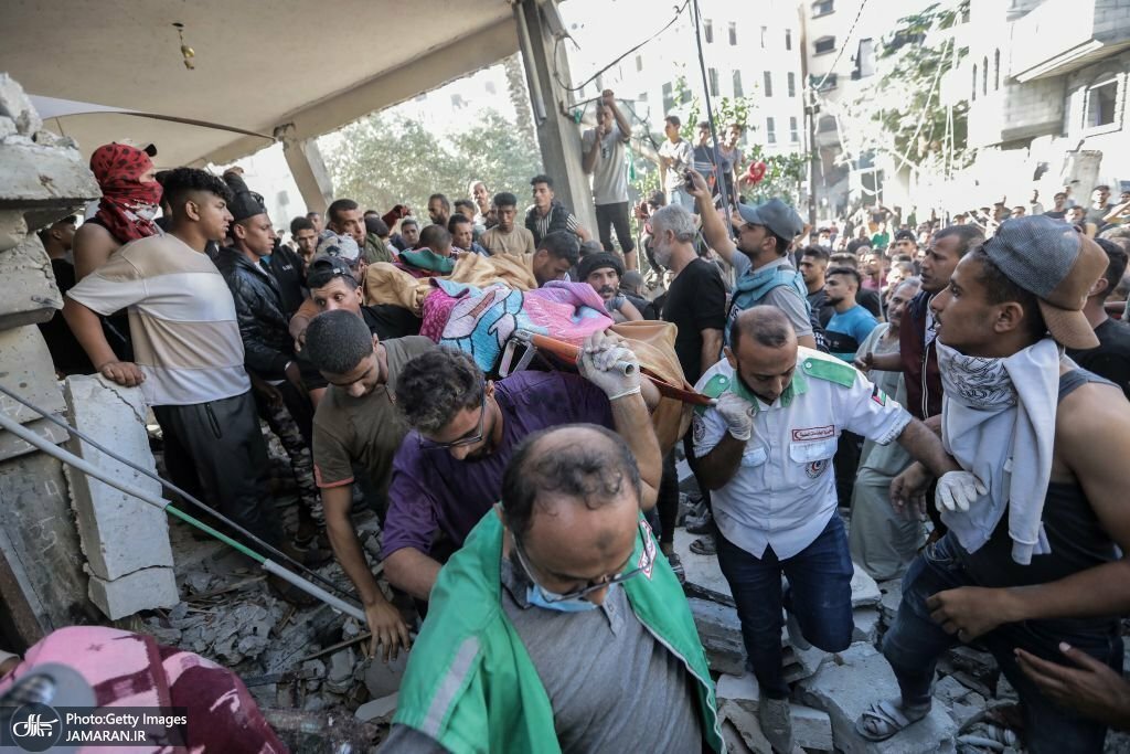 ⚠️هشدار: این گزارش حاوی تصاویر هولناک و تکان دهنده است. به گزارش جماران، بیش از 40 روز از حملات رژیم کودککش صهیونیستی به غزه می گذرد و جنگندههای ارتش این رژیم حملات شدید و بی سابقهای را علیه این منطقه انجام دادهاند و تاکنون هزاران نفر از جمله کودکان و زنان در این حملات به شهادت رسیدهاند. همزمان رژیم صهیونیستی محاصره کامل و شدیدی بر منطقه غزه اعمال میکند و مانع از ورود آب، غذا، دارو و کمکهای انسان دوستانه به این منطقه می شود. ادامه حملات این رژیم به غزه در حالی است که بنیامین نتانیاهو، درخواستهای بینالمللی برای برقراری آتشبس، را رد کرده است. وزارت بهداشت غزه، اعلام کرد که از زمان حملات وحشیانه اشغالگران تاکنون بیش از 12 هزار نفر که اکثراً کودکان، زنان و افراد غیرنظامی هستند، به شهادت رسیدهاند. دبیرکل سازمان ملل از نوار غزه به عنوان «قبرستانی برای کودکان» یاد کرد. این تصاویر که تنها گوشهای است از جنایات ضد بشری رژیم کودککش صهیونیستی در غزه، سندی است مصور برای مدعیان حقوق بشر.