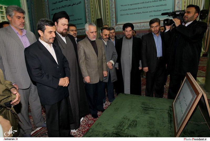 به گزارش جماران، محمود احمدی نژاد، رئیس جمهوری و اعضای هیات دولت با حضور در حرم مطهر امام خمینی(س) با آرمان های بنیانگذار جمهوری اسلامی ایران تجدید میثاق کردند.