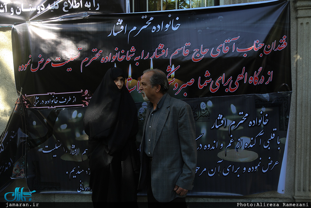 به گزارش جماران، مراسم تشییع پیکر زندهیاد قاسم افشار (گوینده با سابقه خبر) صبح امروز (۲۷ اردیبهشت ماه) با حضور جمع زیادی از مردم و خانواده و همکارانش در مقابل منزل آن مرحوم برگزار شد. حجت الاسلام و المسلمین سید رضا اکرمی، رحمان نظام اسلامی، فواد بابان، علی کاوه، جعفر پناهی، مرتضی حیدری، حسن سلطانی، مهناز شیرازی، علی شکوری راد، مازیار ناظمی، حسین رنجبران و ... از جمله حاضرین در مراسم تشییع پیکر قاسم افشار بودند.