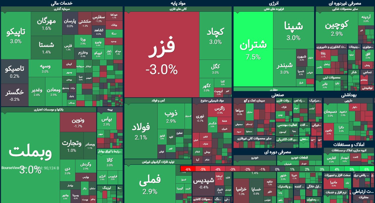 نمادهای فملی و شتران تاثیر ۱۱ هزار واحدی در رشد شاخص داشتند نمادهای وبملت و داترا نیز پرتراکمش‌ترین نهادهای معاملات امروز محسوب می‌شوند.