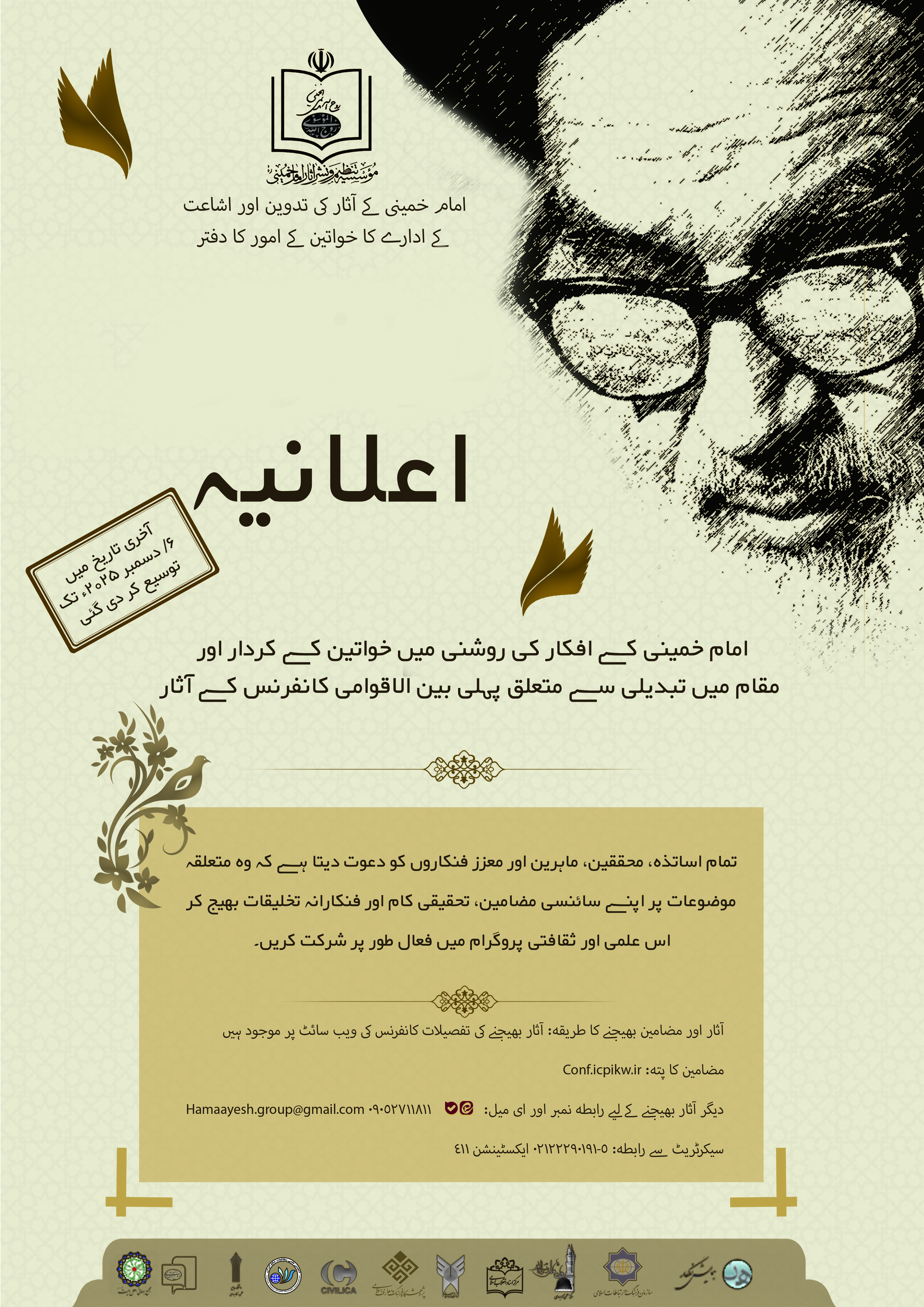 یہ کانفرنس مؤسسہ تنظیم و نشر آثارِ امام خمینیؒ کے ادارۂ خواتین کی جانب سے منعقد کی جائے گی۔ اس علمی و فکری اجتماع میں اساتذہ، محققین، ماہرین اور اہلِ قلم کو اپنے علمی و تحقیقی مضامین کے ذریعے شرکت کی دعوت دی گئی ہے۔