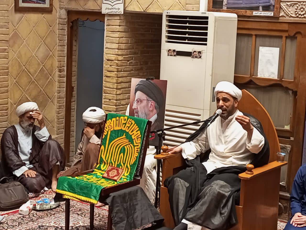 مجلس عزاء في بيت الإمام الخميني (قده) ، في النجف الاشرف ، بنصب علم الإمام الرضا عليه السلام ، و صورة رئيس الجمهورية الشهيد السيد ابراهيم رئيسي .