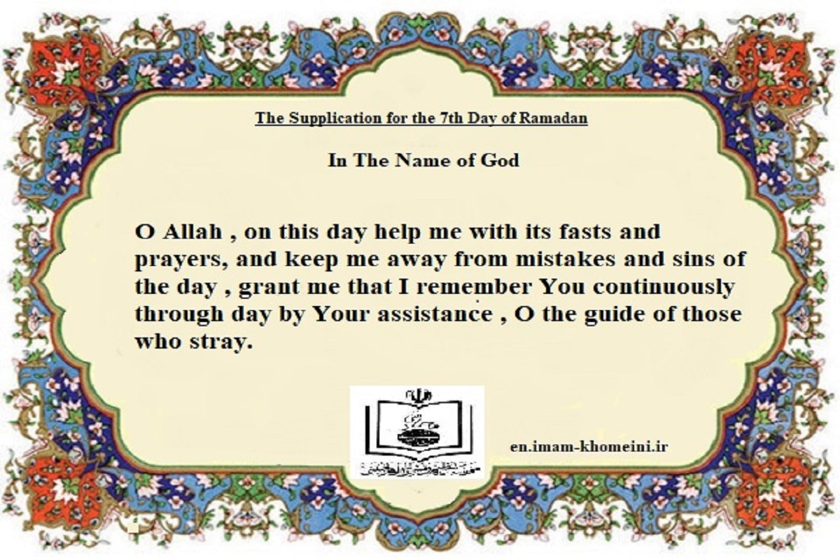 Oh Allah , on this day help me with its fasts and prayers, and keep me away from mistakes and sins of the day , grant me that I remember You continuously through day by Your assistance , O the guide of those who stray.