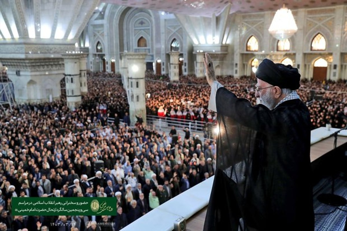 وأضاف: اليوم أريد أن أتحدث عن قضيتين مهمتين حدثتا بين حزيران ( خرداد) الماضي واليوم من وجهة نظر الإمام الجليل ، إحداهما قضية فلسطين، وهي تعتبر الیوم، القضية الأولى للعالم ، وقد بدأت بحضور شعبي كبير وقد جذبت نتائجها انتباه العالم وحولتها إلى القضیة الأولى للعالم .