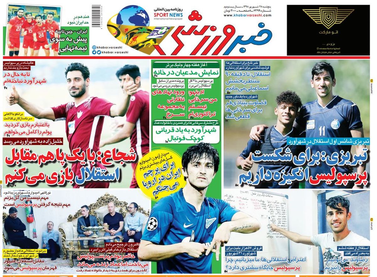 روزنامههای ورزشی ۲۸ شهریور ۱۳۹۸
