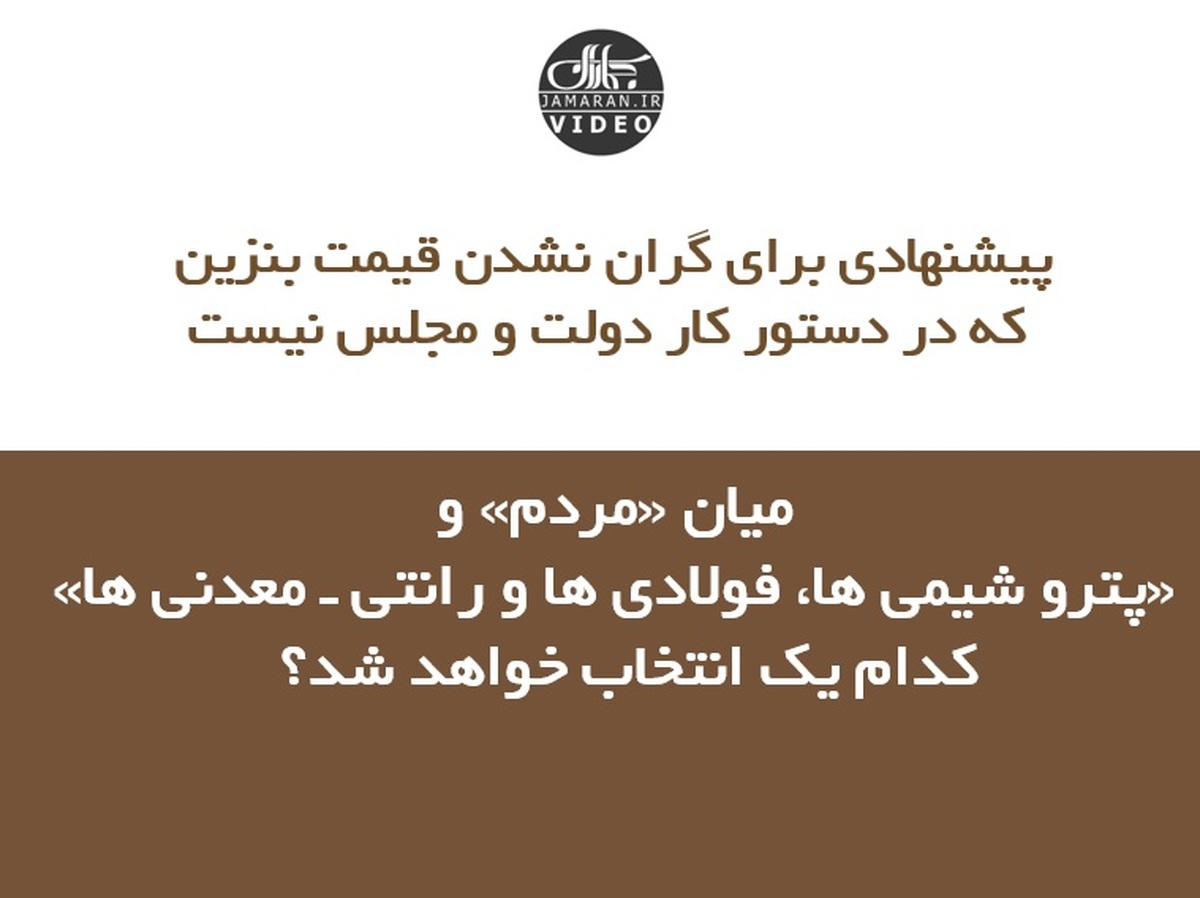 به گزارش خبرنگار جماران این مستند، بخشی از سخنان دکتر فرشاد مؤمنی است که درآمد دولت از گران کردن قیمت بنزین را با رانت انرژی پتروشیمی ها، فولادی ها و صنایع رانتی ـ معدنی مقایسه می کند و به طرح این پرسش می پردازد که سرانجام دولت میان مردم و «پترو شیمی ها، فولادی ها و رانتی ـ معدنی ها» کدام یک را انتخاب خواهد کرد؟