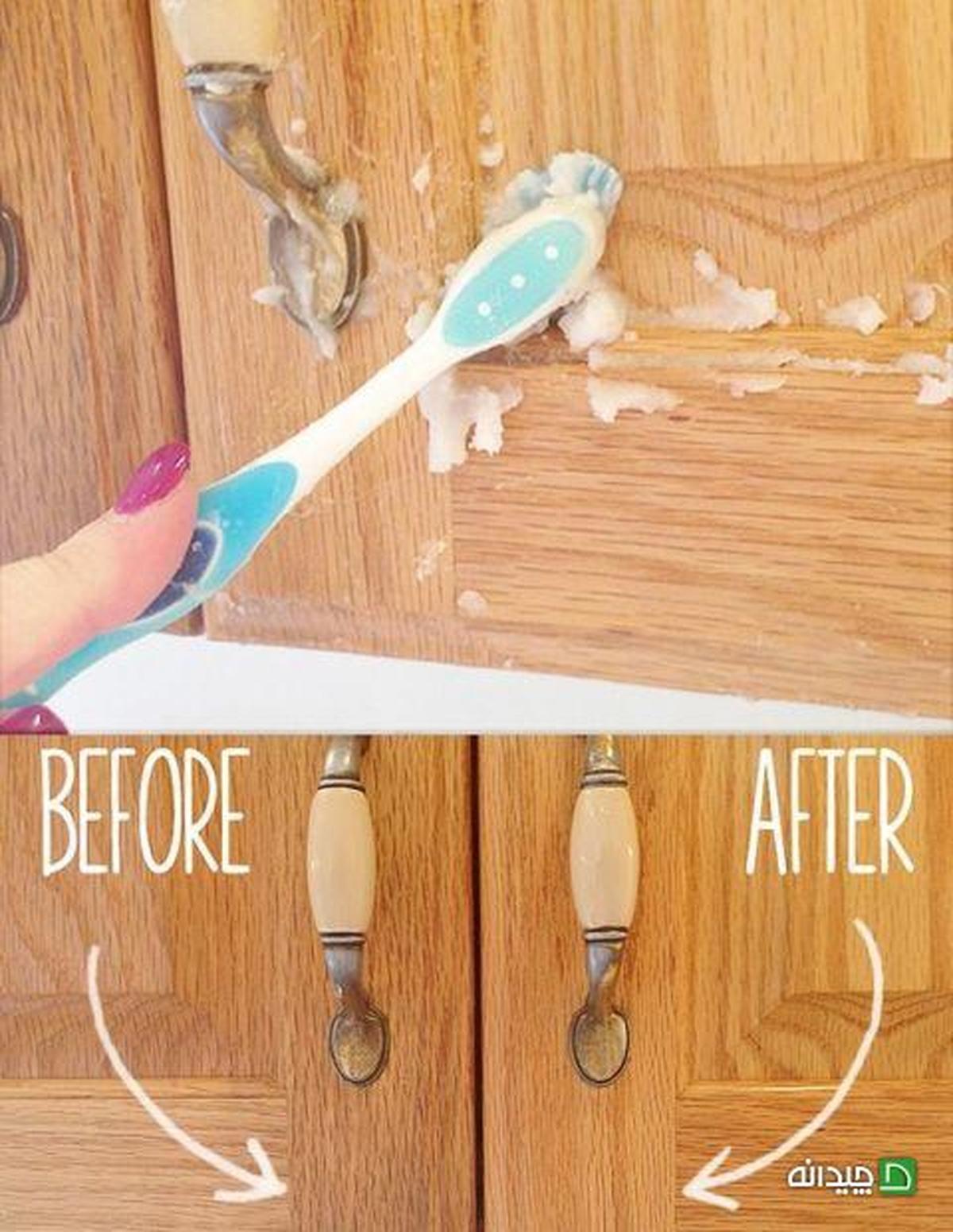 اگر کابینت های شما چوبی است بهتر است نگاهی دقیق تر به آن باندازید، تا با لکه های ریز چربی و روغن که روی آن جمع شده ات بیشتر آشنا شوید و سریع تر اقدام به تمیز کردن آن نمایید، برای این منظور کافی است روغن گیاهی را با جوش شیرین مخلوط کنید و با کمک یک مسواک قدیمی شروع به تمیز کردن کابینت ها کنید، مطلب ساده ترین روش پاک کردن لکه کابینت ها و سطوح چوبی! می تواند در این زمینه اطلاعات بیشتری به شما بدهد.