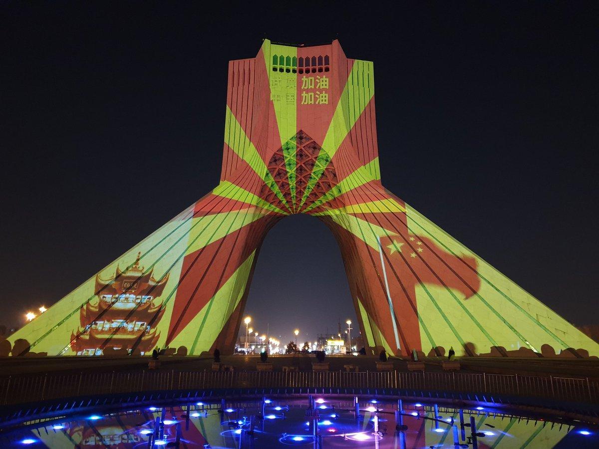 «شهرداری تهران امشب به نمایندگی از شهروندان ایران و تهران با اکران تصاویری بر برج آزادی پیام همدردی ملت ایران با ملت چین در مبارزه با چالش ویروس کرونا را به دنیا مخابره نمود. امیدواریم مردم چین با همبستگی خود و همراهی جهانیان با صلح و سلامت از این بحران عبور کنند.»