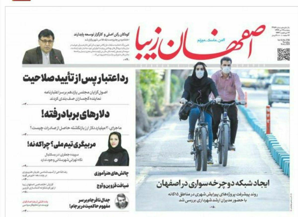 روزنامه اصفهان زیبا» روزنامه شهرداری اصفهان در شماره روز پنجشنبه ۱۹ تیر، برای درج خبر ایجاد شبکه دوچرخه سواری در اصفهان از تصویر زن و مرد دوچرخه سوار استفاده کرده بود.