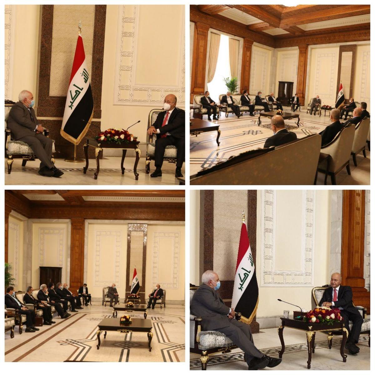 وزیر امور خارجه جمهوری اسلامی ایران پیش از ظهر امروز با آقای برهم صالح رئیس جمهور عراق و الکاظمی نخست وزیر عراق دیدار و گفتگو کرد.