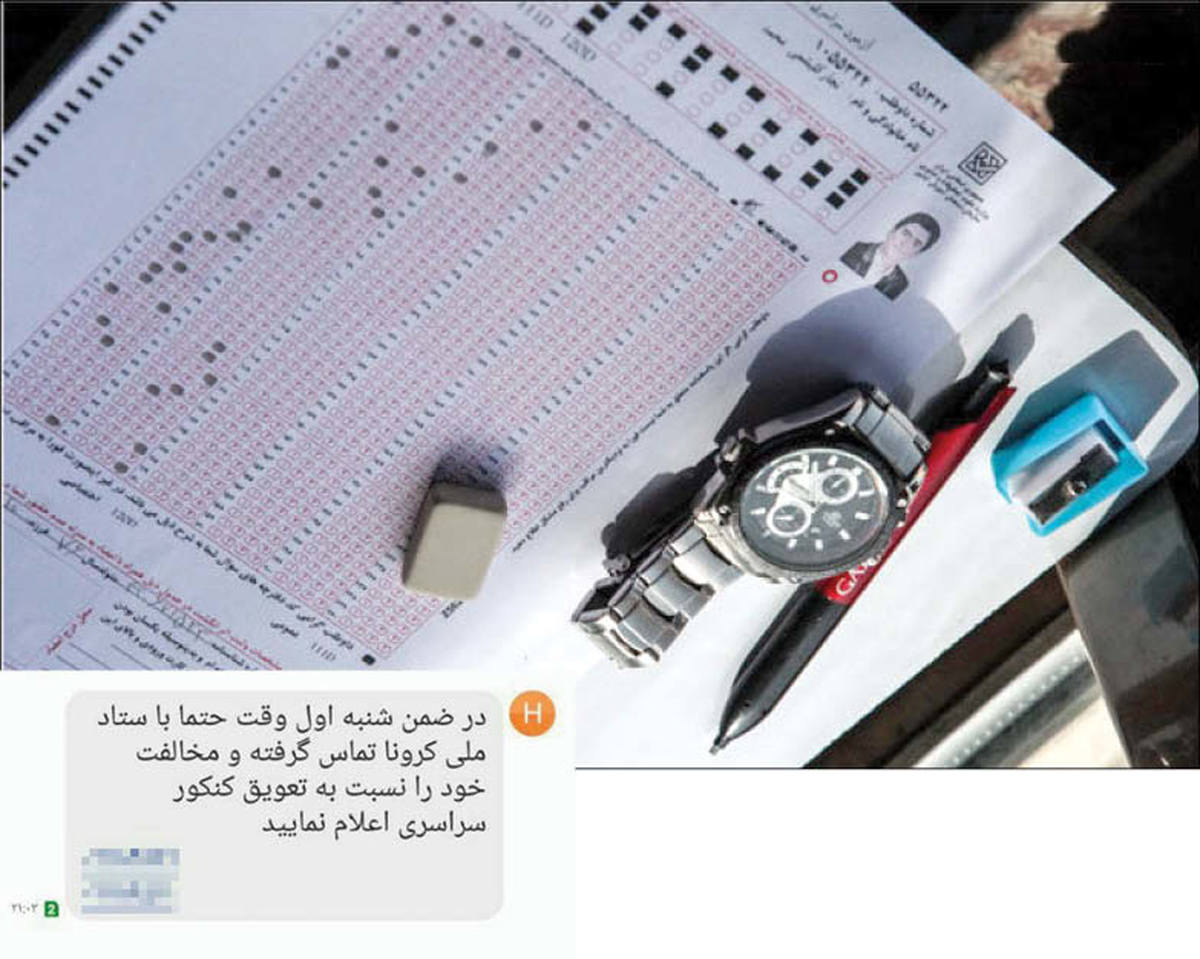 پیام های منتشر شده به برخی داوطلبان کنکور نشان می دهد برخی از مشاوران یک موسسه آموزشی در گفت وگوی مجازی با داوطلبان، از آن ها خواسته اند به هر شکل ممکن مخالفت خودشان با به تعویق افتادن کنکور را اعلام کنند.