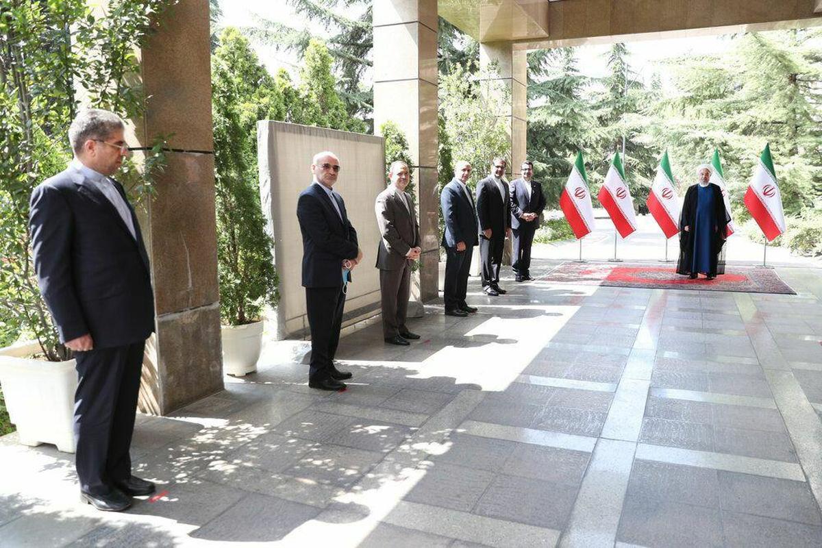 عکسی از دیدار دیپلماتیک روحانی با سفرای جدید ایران با رعایت فاصله گذاری اجتماعی