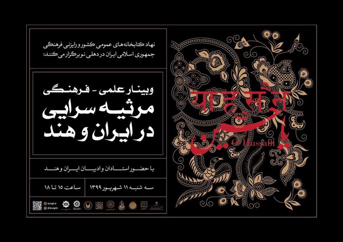 با مشارکت محافل ادبی نهاد کتابخانه های عمومی کشور و رایزنی فرهنگی ایران در هندوستان، وبینار علمی-فرهنگی «مرثیه سرایی در ایران و هند» برگزار می شود.