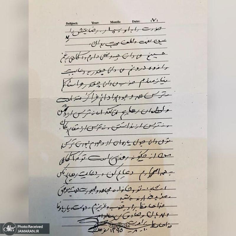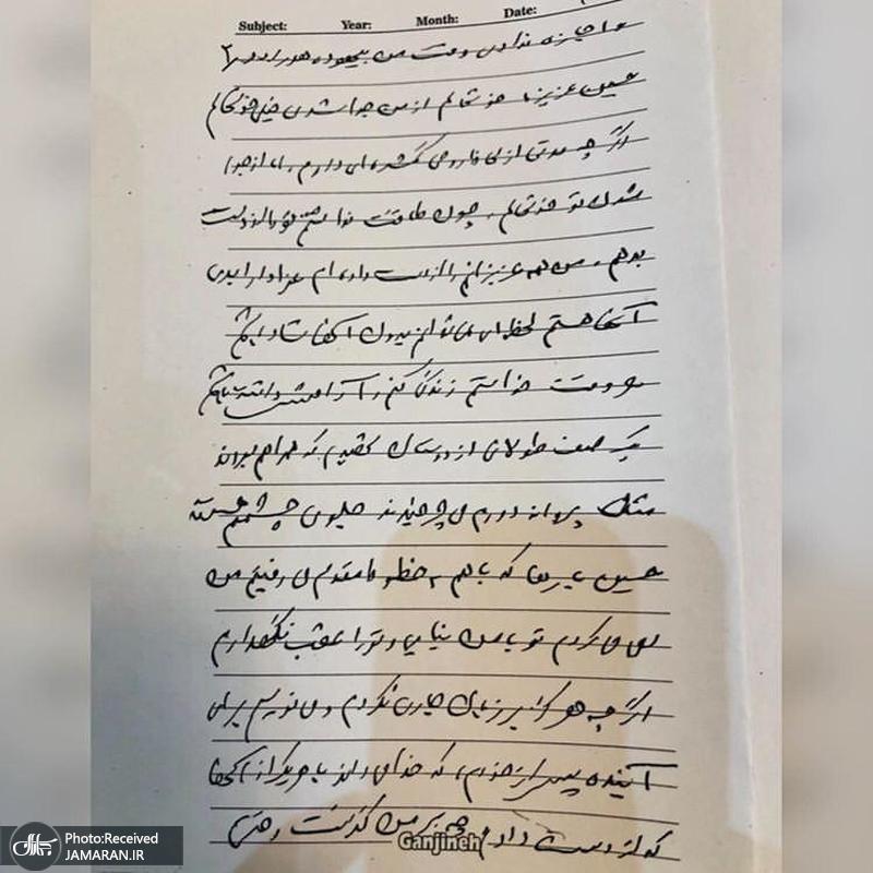 متن کامل نامه شهید سلیمانی به شهید پورجعفری به شرح زیر است: