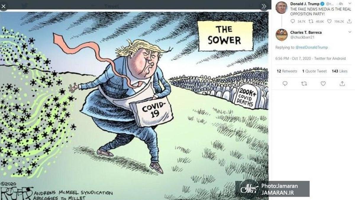 یکی از کاربران توییتر با یک کاریکاتور مربوط به کرونا پاسخ ادعای ترامپ را داد.