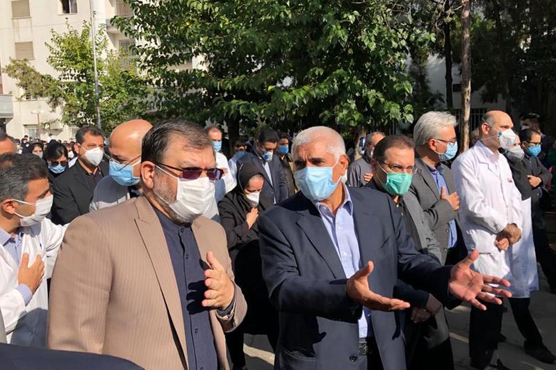 نمایندگان همچنین در مراسم تشییع دکتر اسماعیل حسنی استاد برجسته بیهوشی این بیمارستان که ماهها در بخش کرونایی بیمارستان مشغول خدمت بودند و بر اثر ابتلا به کرونا به جمع شهدای سلامت پیوست شرکت کردند.