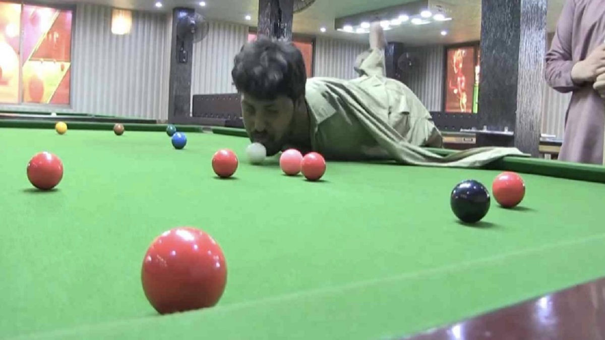 یک ورزشکار پاکستانی به دلیل قطع شدن دستانش، با دهان بیلیارد بازی میکند.